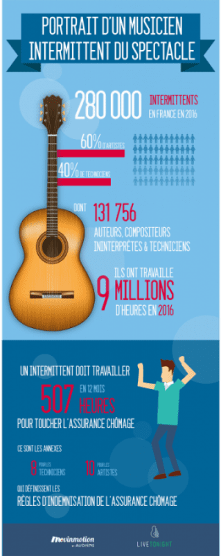 - 507h c’est le nombre d’heure qu’un intermittent doit travailler sur 12 mois pour pouvoir recevoir l’assurance chômage.